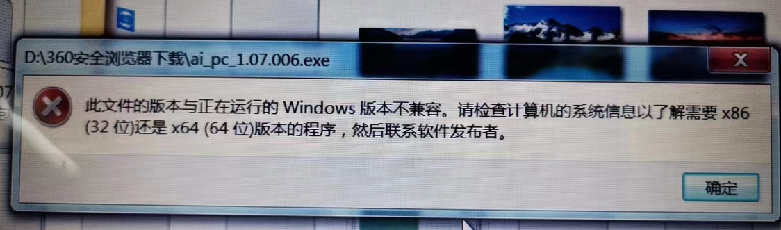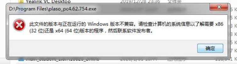7)win7系统,安装客户端时提示 版本不兼容 ,如下图