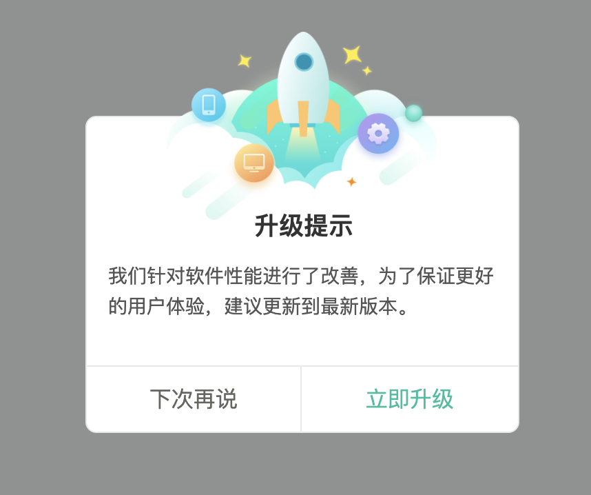 3.1.当客户使用win7/win8/win10 32位系统,或者机构配置了4:3布局课堂时,后续将不再收到客户端推荐/强升提示