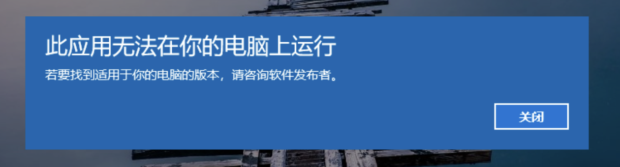Q1:电脑端下载客户端后无法安装,或者安装应用后,打开应用系统提示“此应用无法在你的电脑上运行”